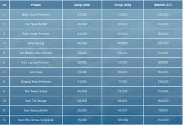 Menjadi penyedia produk ikan kering berkualitas yang dikenal luas di Indonesia dan mancanegara.
